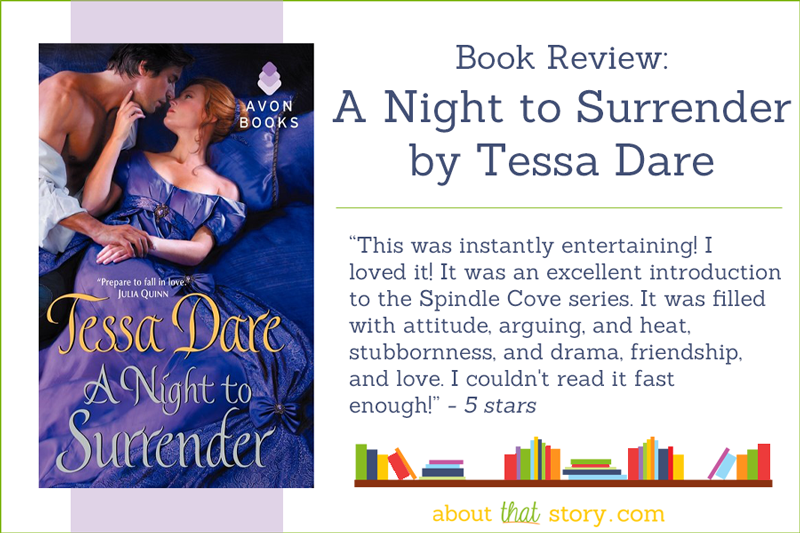 I was thrilled to finally start the Spindle Cove series by Tessa Dare. My first thought, what took me so long! The first book, A Night to Surrender, was awesome and I can't wait to read them all!